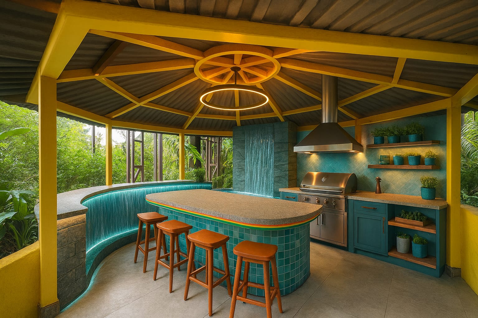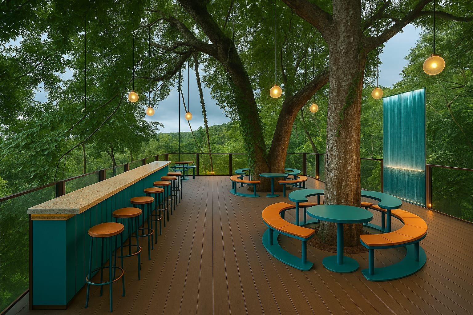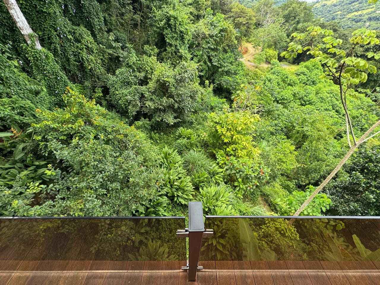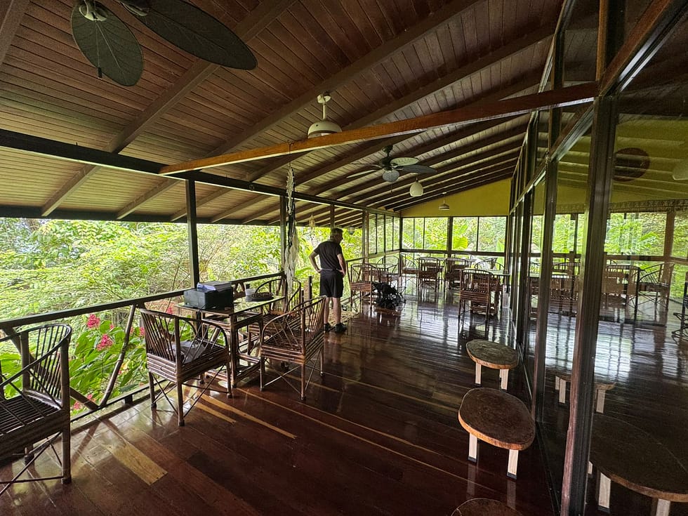 Construction style: Primarily wood with an open-air terrace that overlooks the jungle, creating a natural and immersive dining experience.