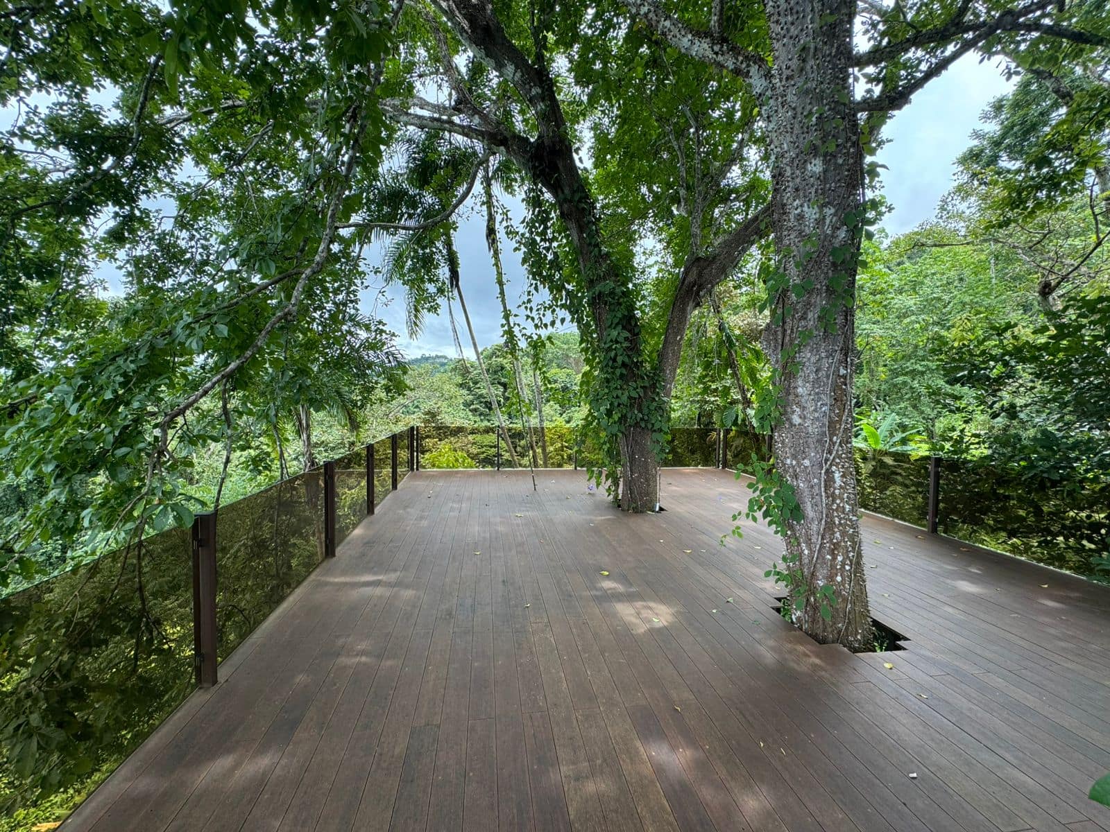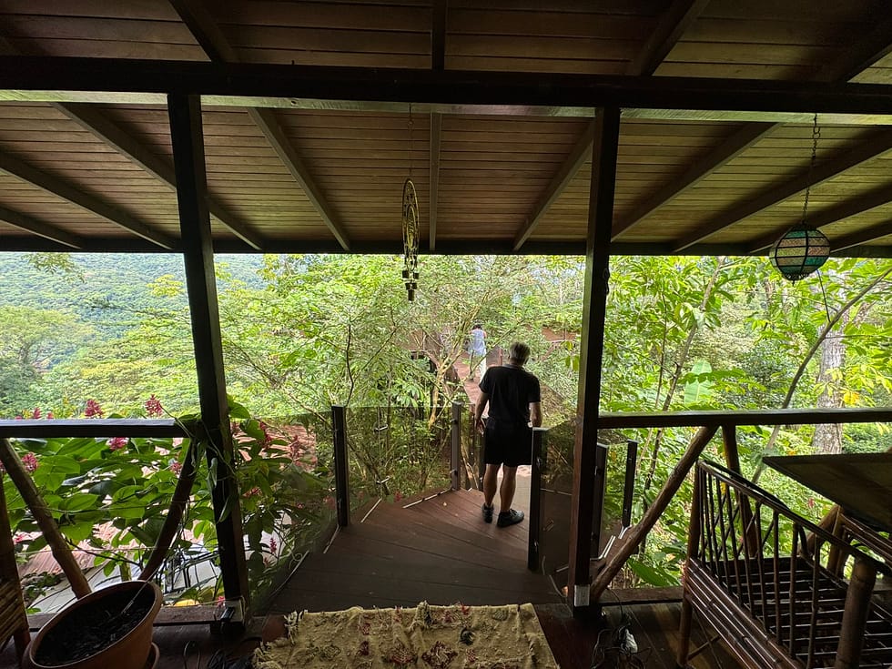Upper level with wood floors and bamboo furnishings, offering a rustic jungle lodge atmosphere.