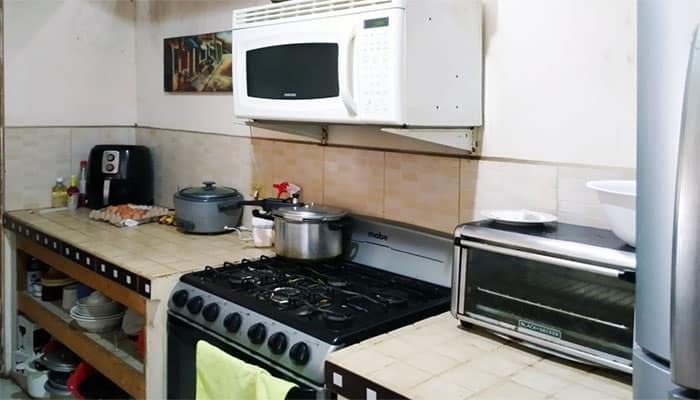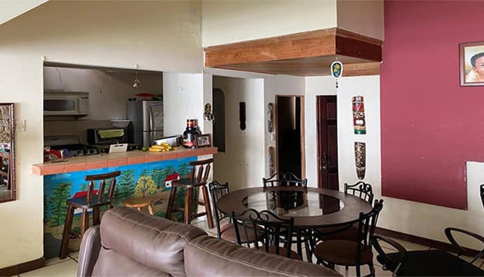 The second apartment (100 m2) was remodelled in January 2022, built in concrete, has a duplex division with the first apartment in gypsum with insulation. The apartment has 2 rooms, a mini office, a laundry room, a mini cellar, 1 kitchen, 1.5 bathroom, a dining room, a hallway, and a garage.