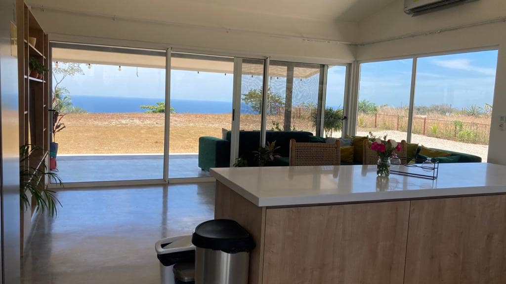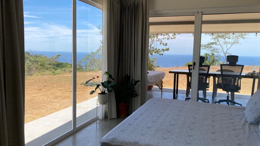 This beautiful single-story home was built 6 months ago on a large lot that overlooks Playa Santa Teresa’s ocean.