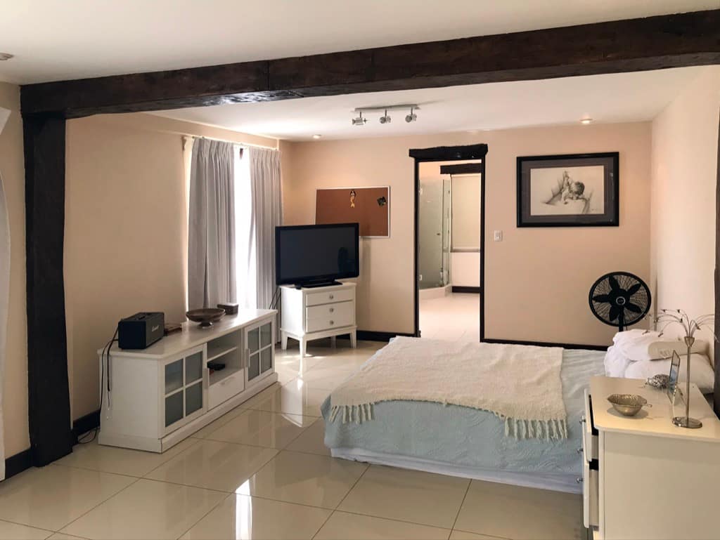 The 1st home is a 2-story modern style home with 5 spacious bedrooms and 5 full bathrooms. The house overlooks the swimming pool and round large covered Rancho. This home is very modern with balconies and incredible views.