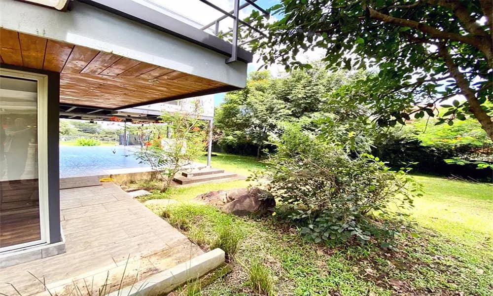 Property Description: This nice modern ample 2-story house in the residential area has 4 rooms, 4.5 bathrooms, and features a beautiful design with plenty of indoor and outdoor space. There is a sizable patio with views of the vast garden, a “beach lounge” area, and a covered jacuzzi. Laundry facilities and a bathroom are available in the maid’s quarters. The bedrooms are large and well-lit on the second floor, and each has a luxurious private bathroom, a 4-car garage, and additional driveway parking available. There is a single regulated access point and constant 24/7 security.