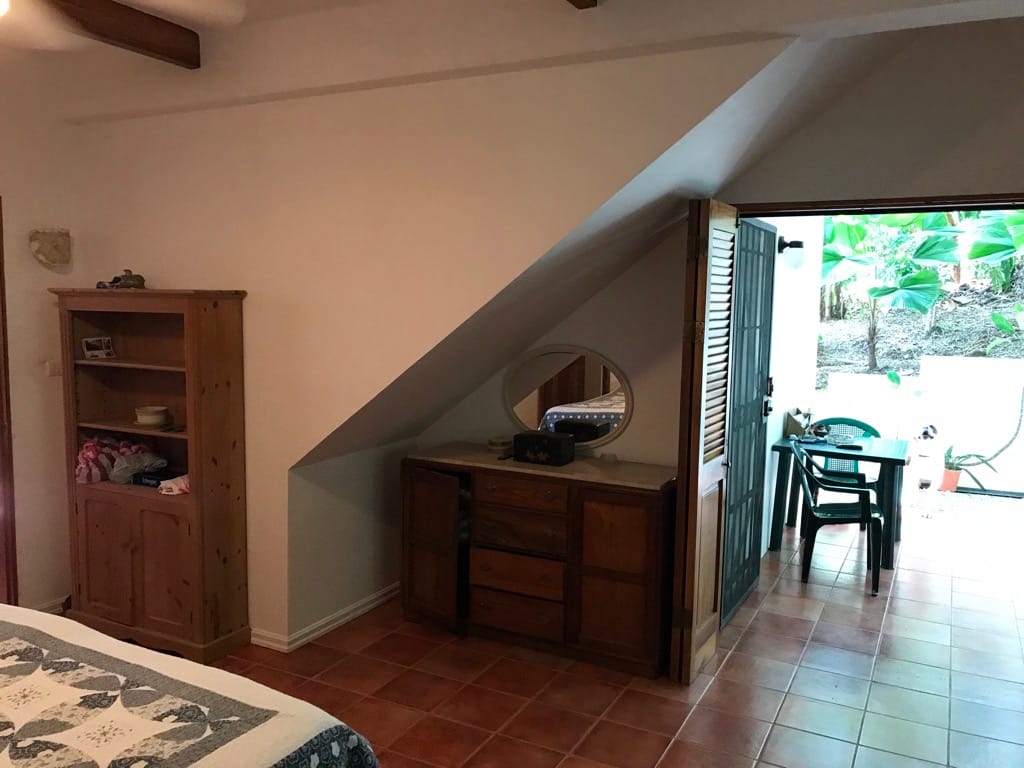 GUEST HOUSE: set well back from the road and surrounded by mature trees and foliage. There are 2 bedrooms, a bathroom, an open-plan living/kitchen area plus front and rear patios.