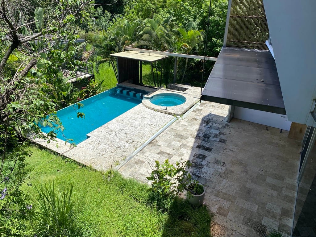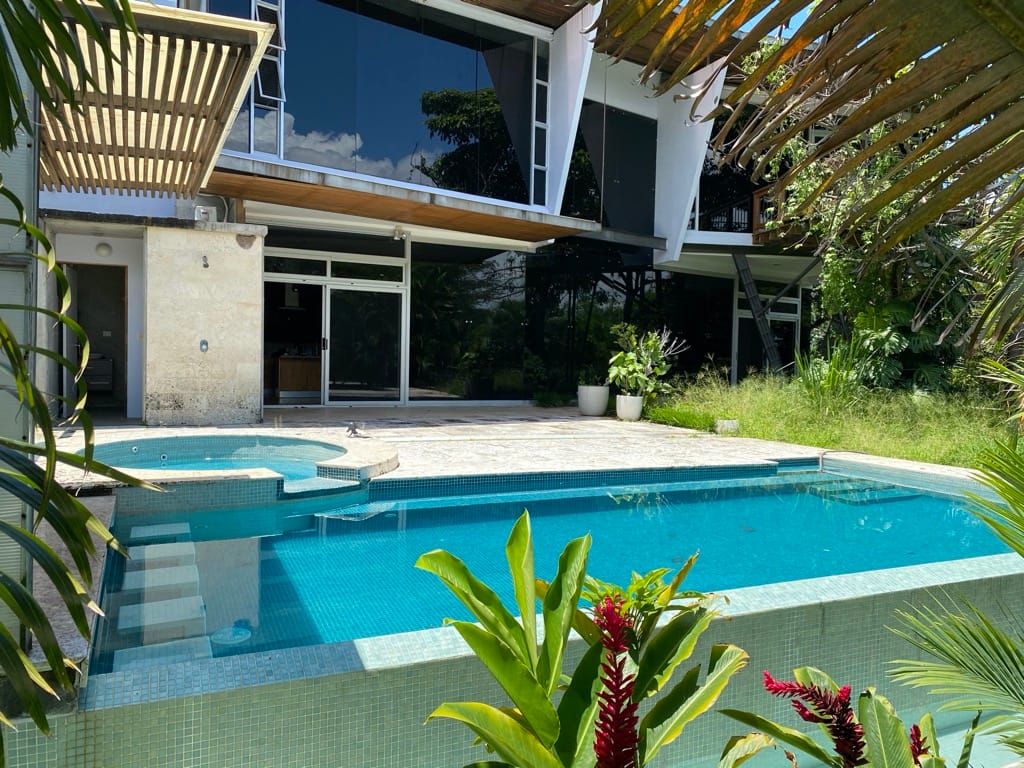 Property Description: This is a beautiful house in the hills of Santa Ana. The property has a pool area, an open kitchen, an entertainment room, all made of quality wood and cement.